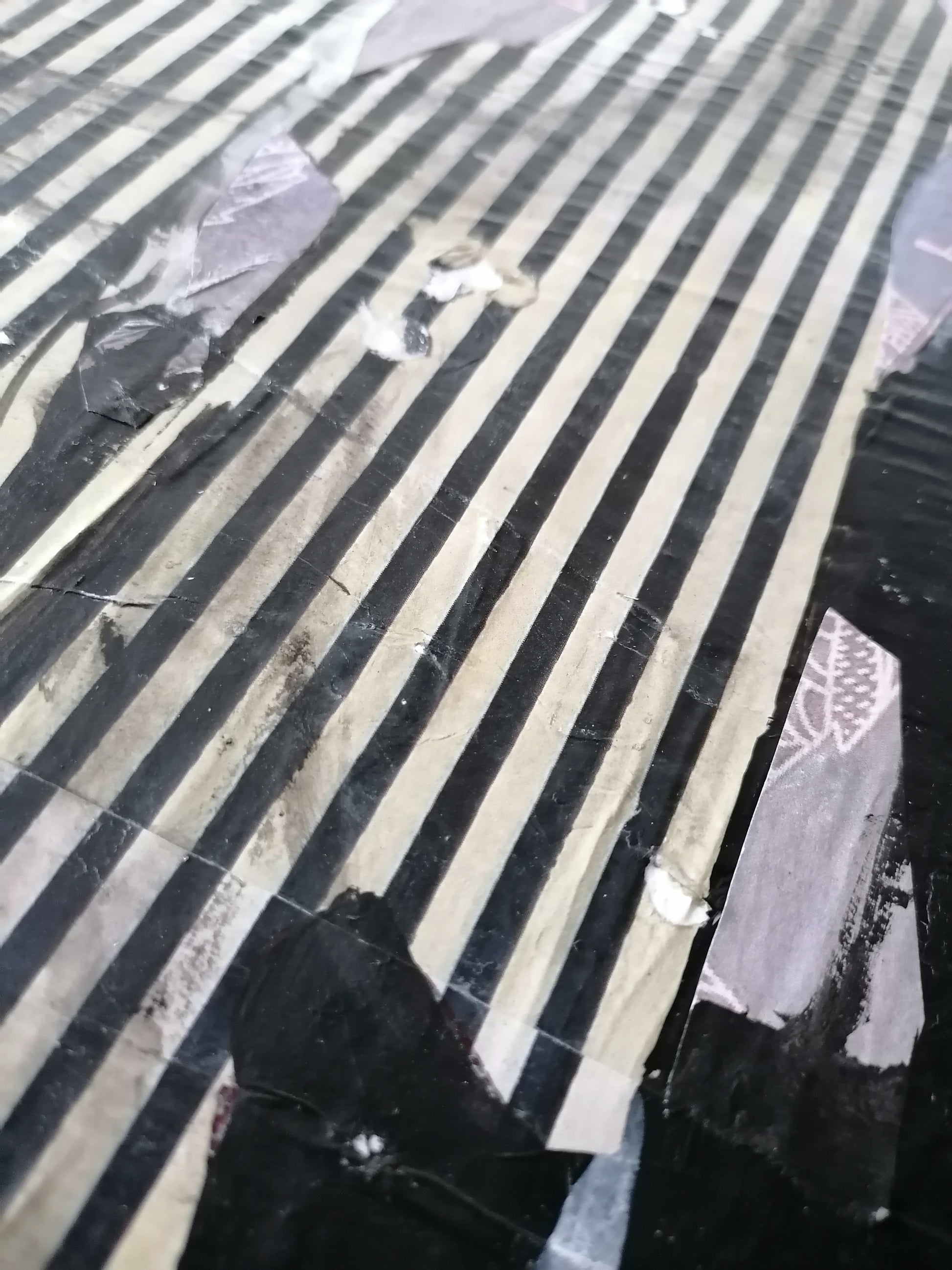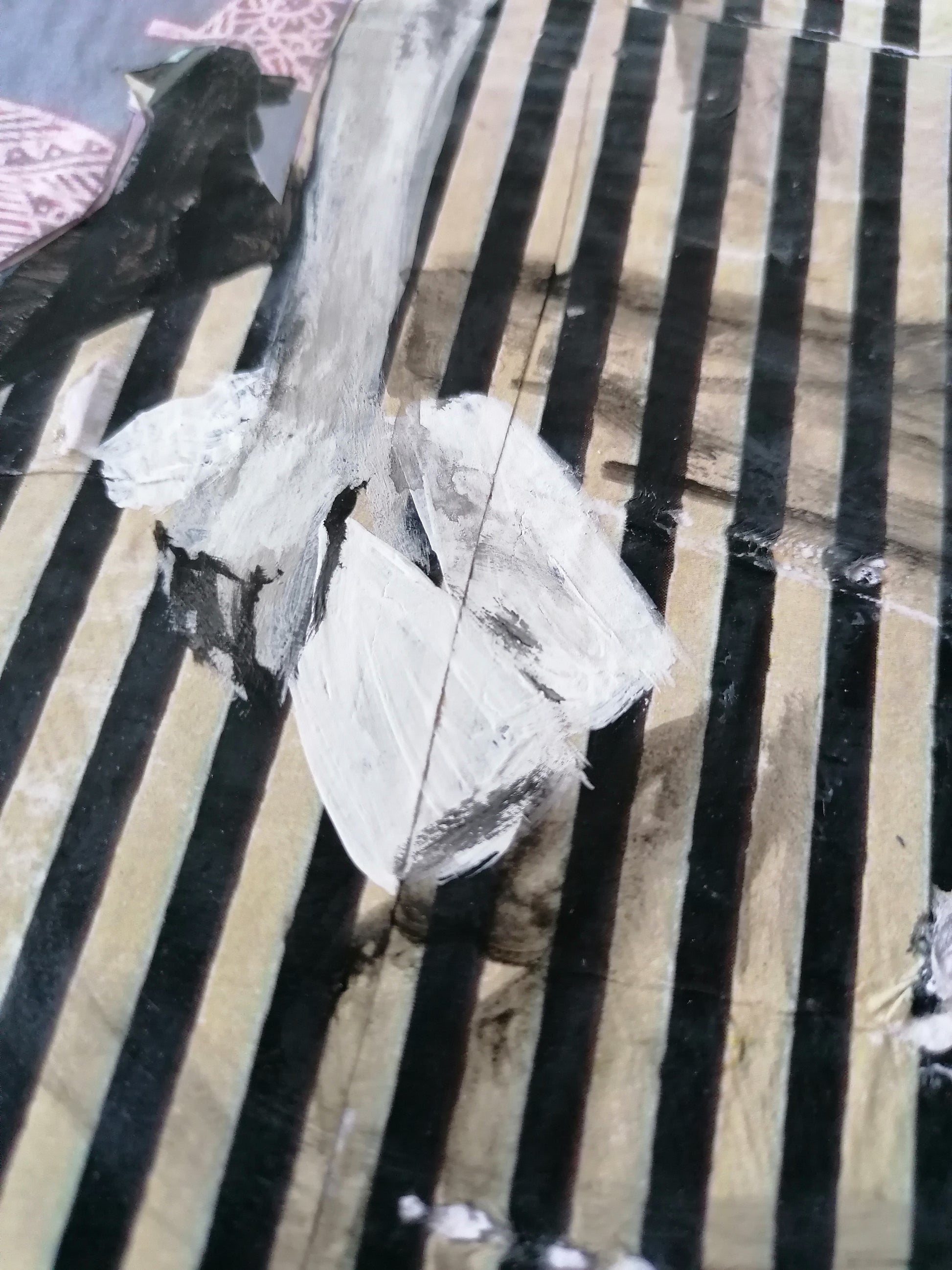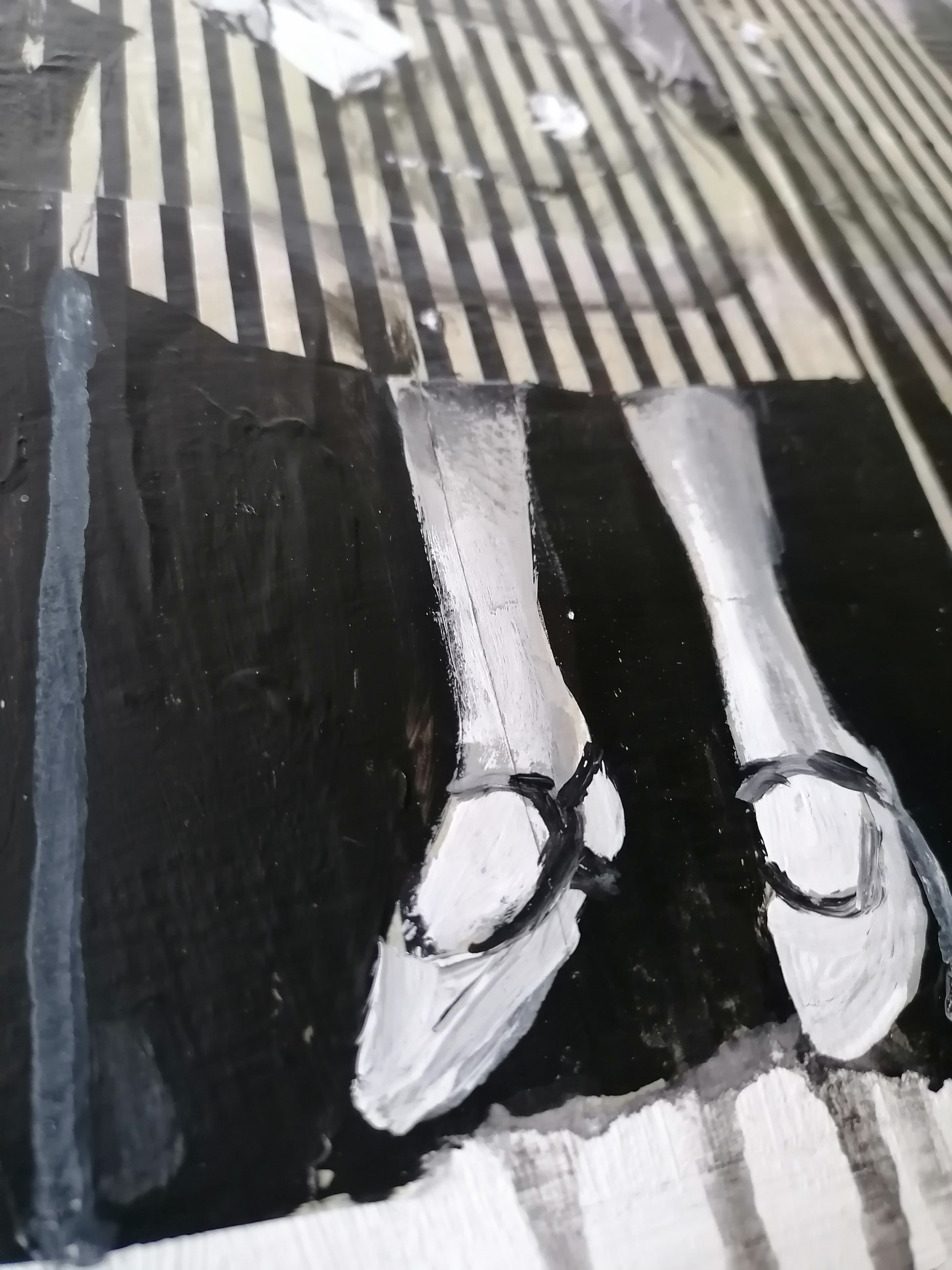Un uomo indefinito e una donna vestiti di strisce, si stanno sposando. I testimoni all'evento sono macchie nere che si muovono su uno sfondo di foglie al vento..caduci e instabili come il matrimonio?
