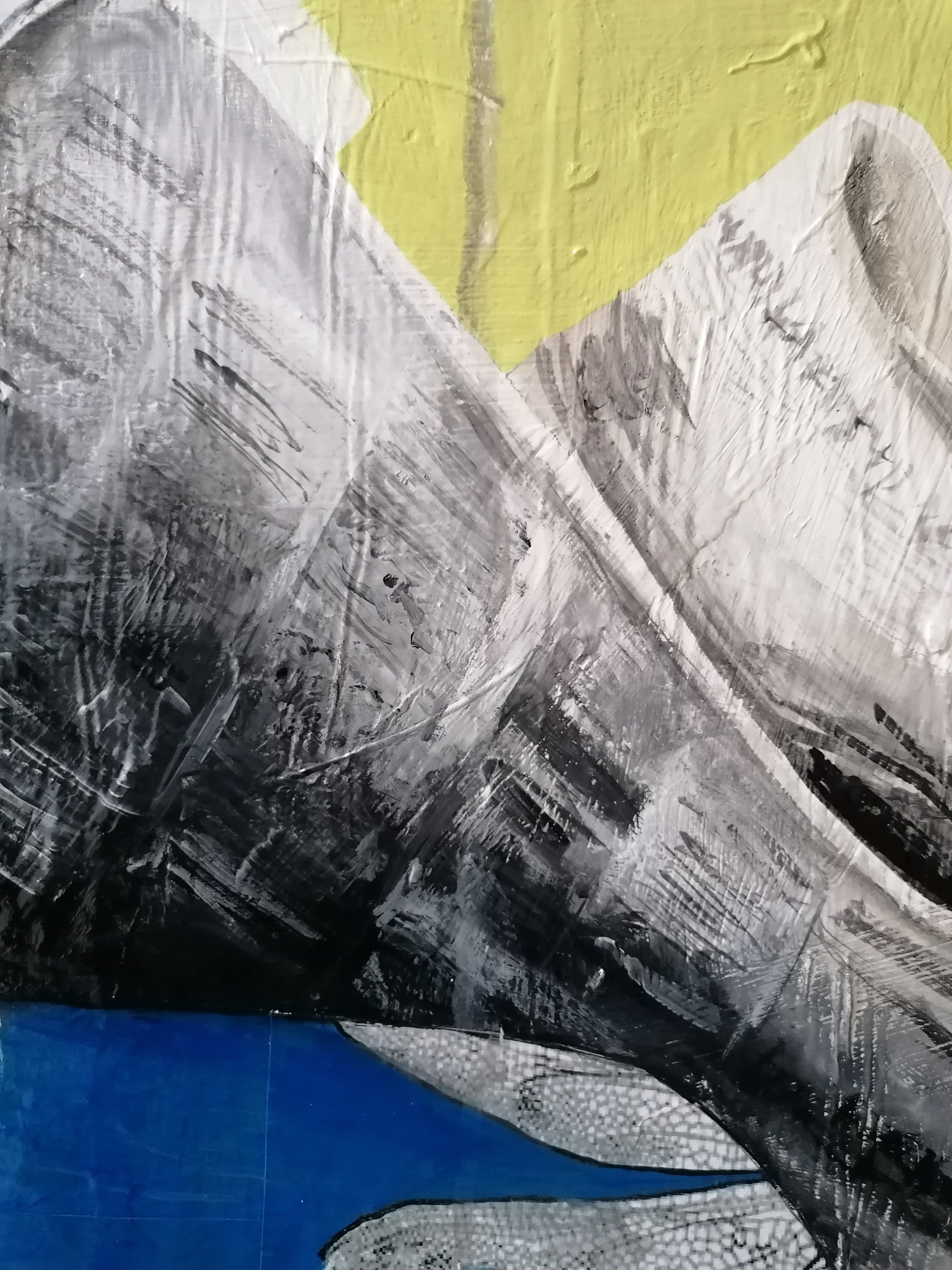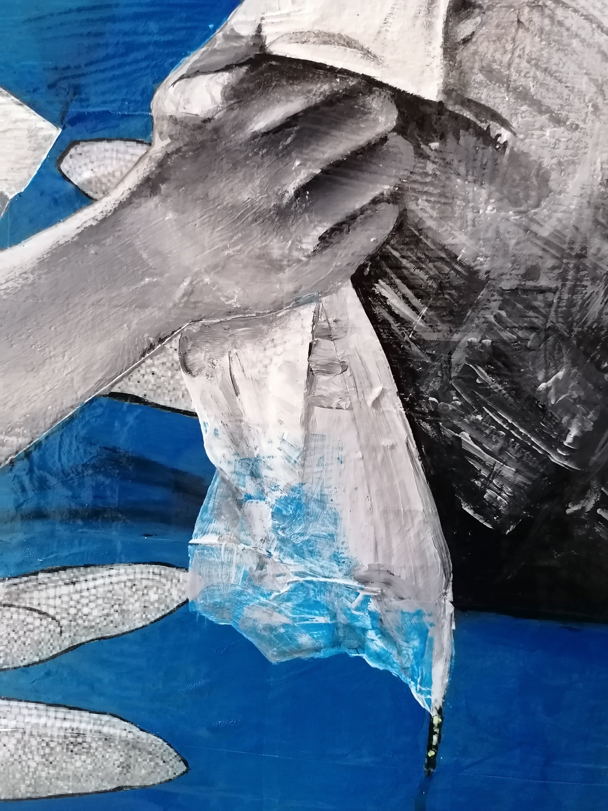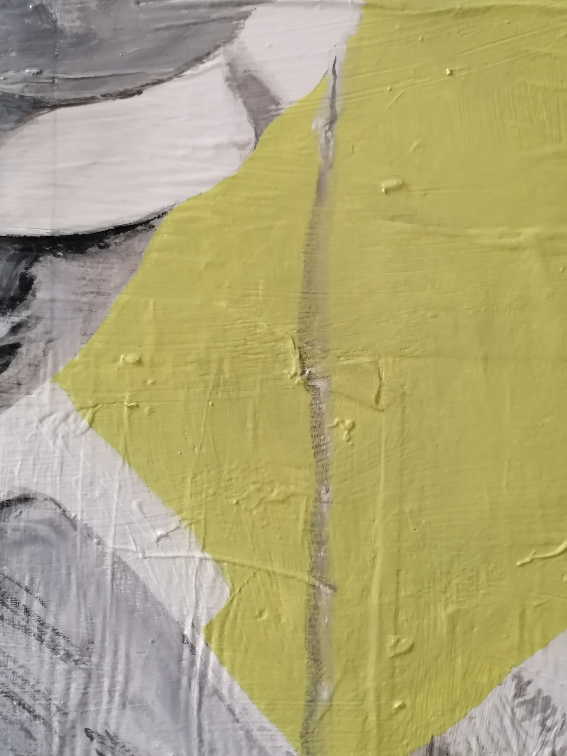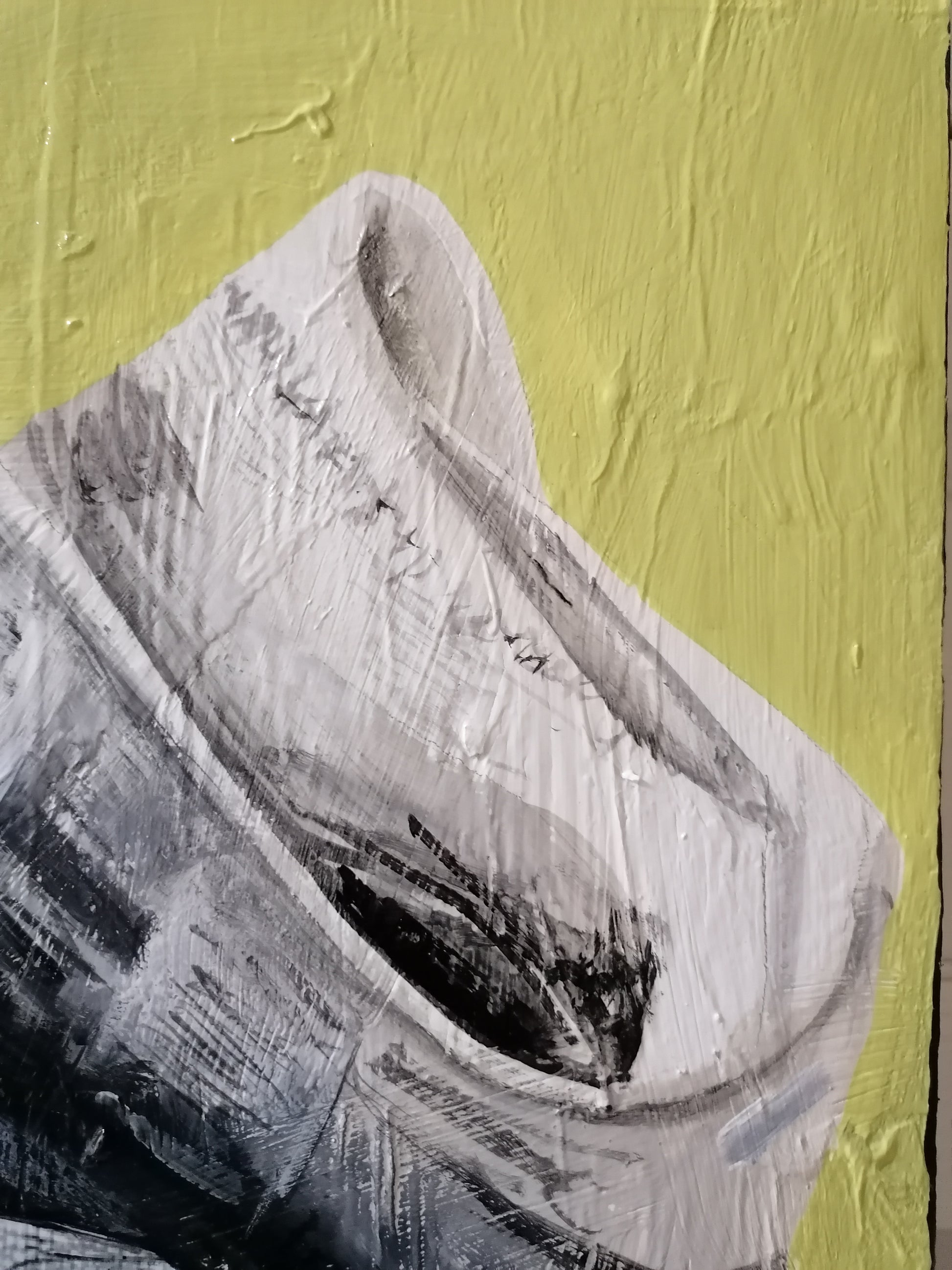 Il dipinto è realizzato con una tecnica mista :sull'abito della donna ho applicato una carta decorativa vintage mentre il resto dell'opera è dipinta in acrilico. Ho utilizzato una vernice lucida trasparente protettiva.