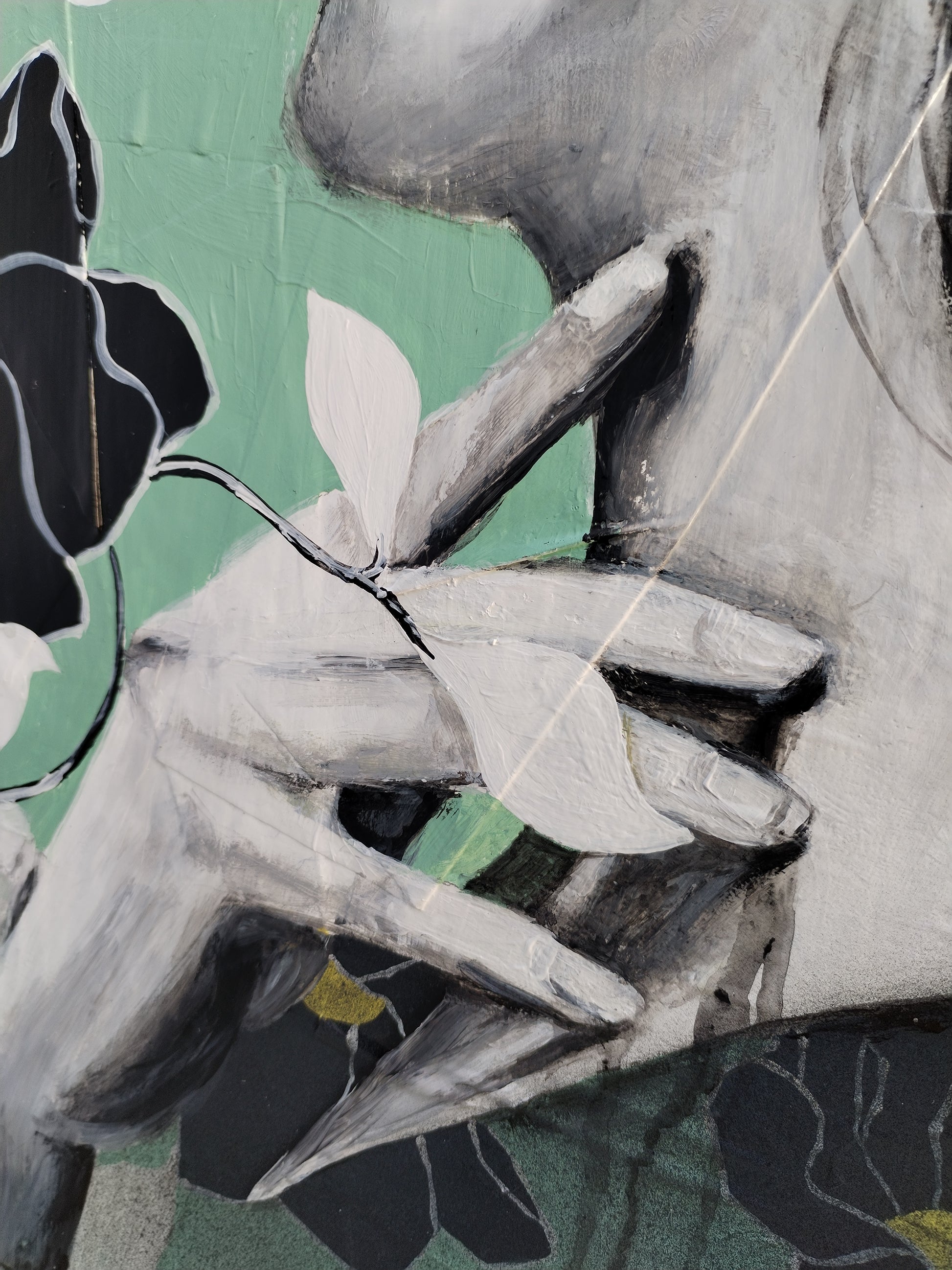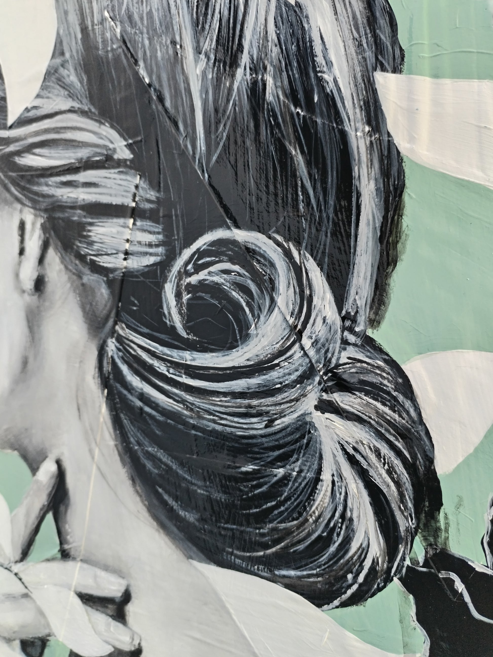 QUADRO DONNA VINTAGE FIORI E FOGLIE