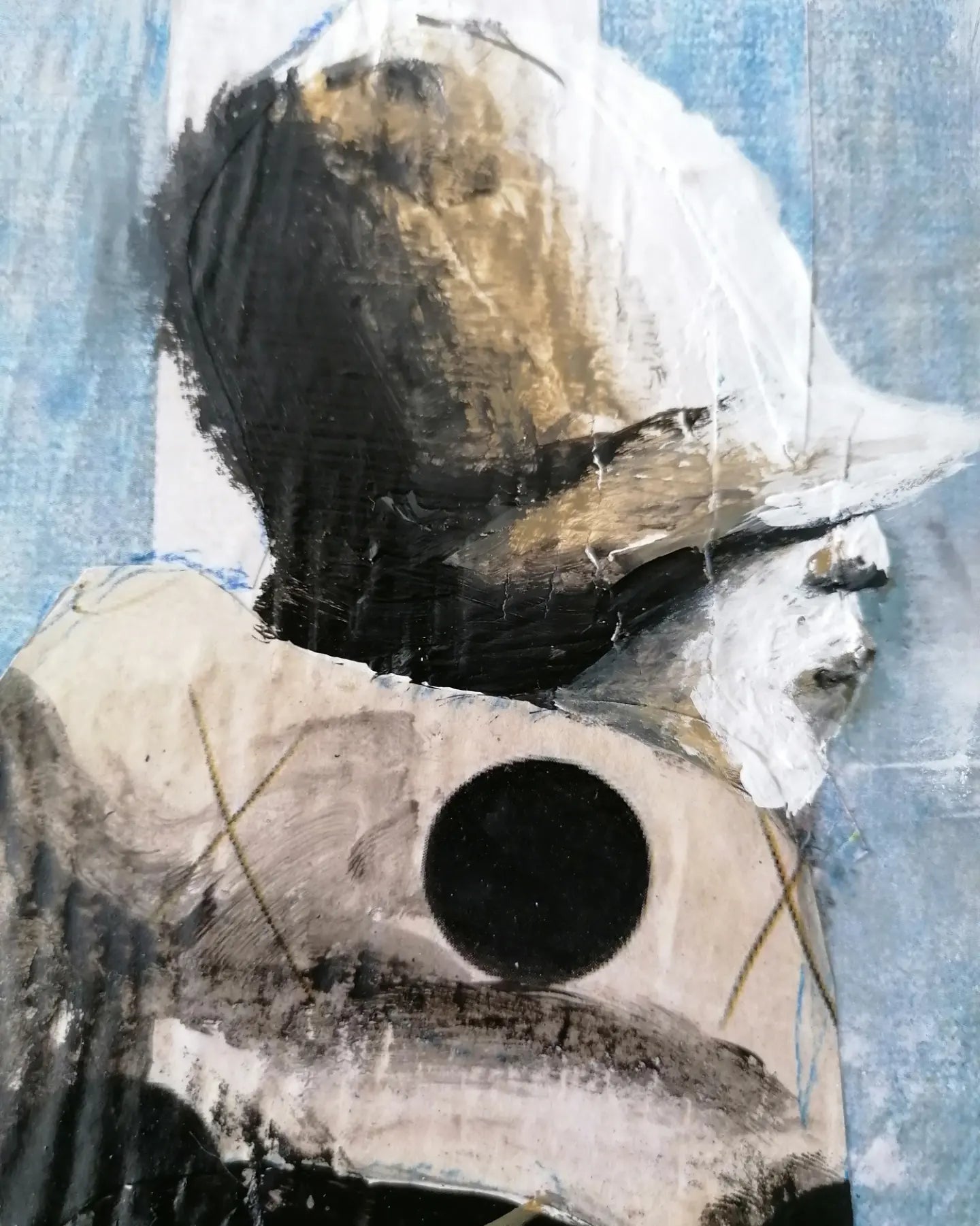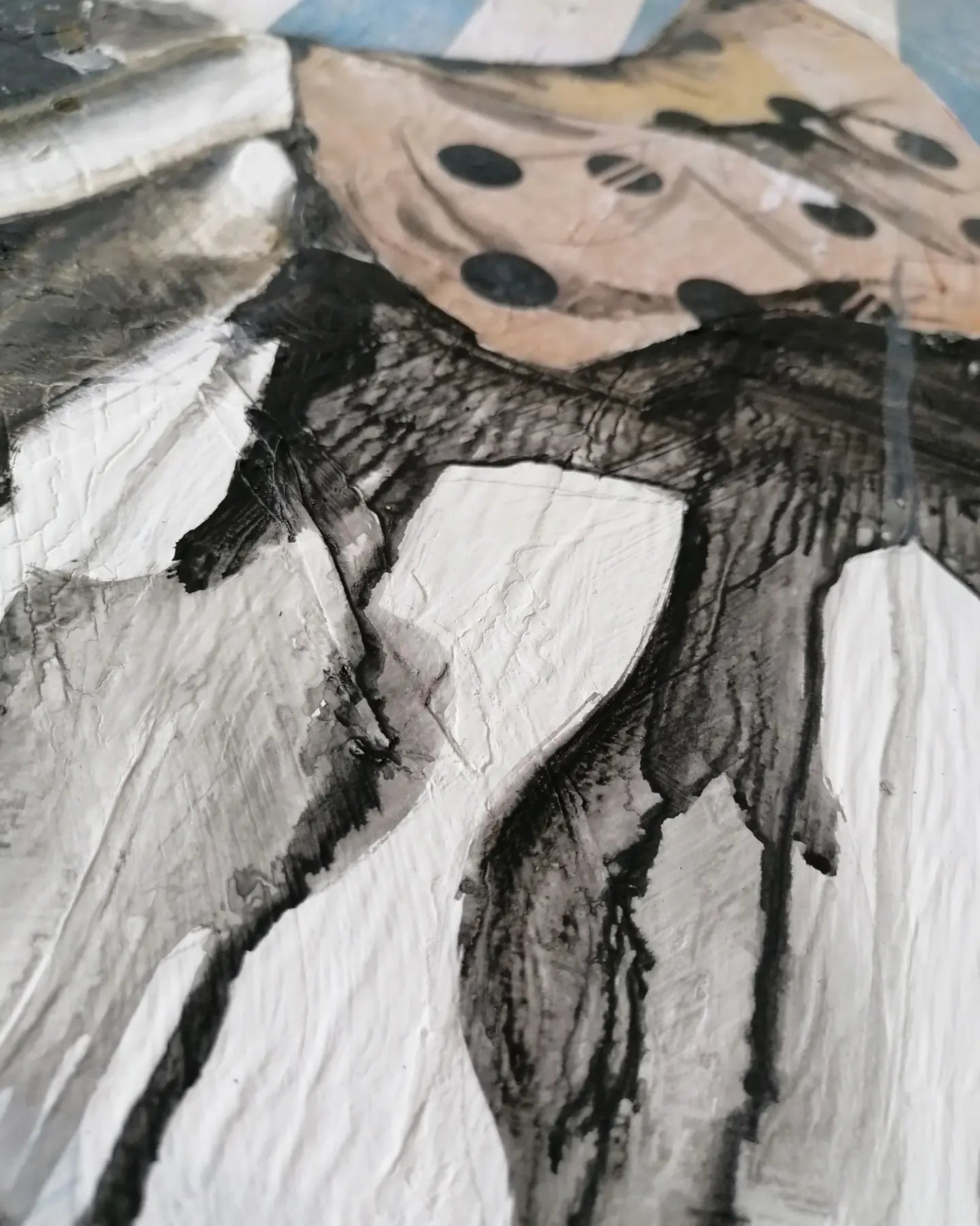 Due ragazze col cappello sono insieme ma distanti, guardano in direzioni diverse, entrambe nel vuoto. Non comunicano, ma il loro legame è testimoniato dalla fantasia degli abiti che le accomuna.