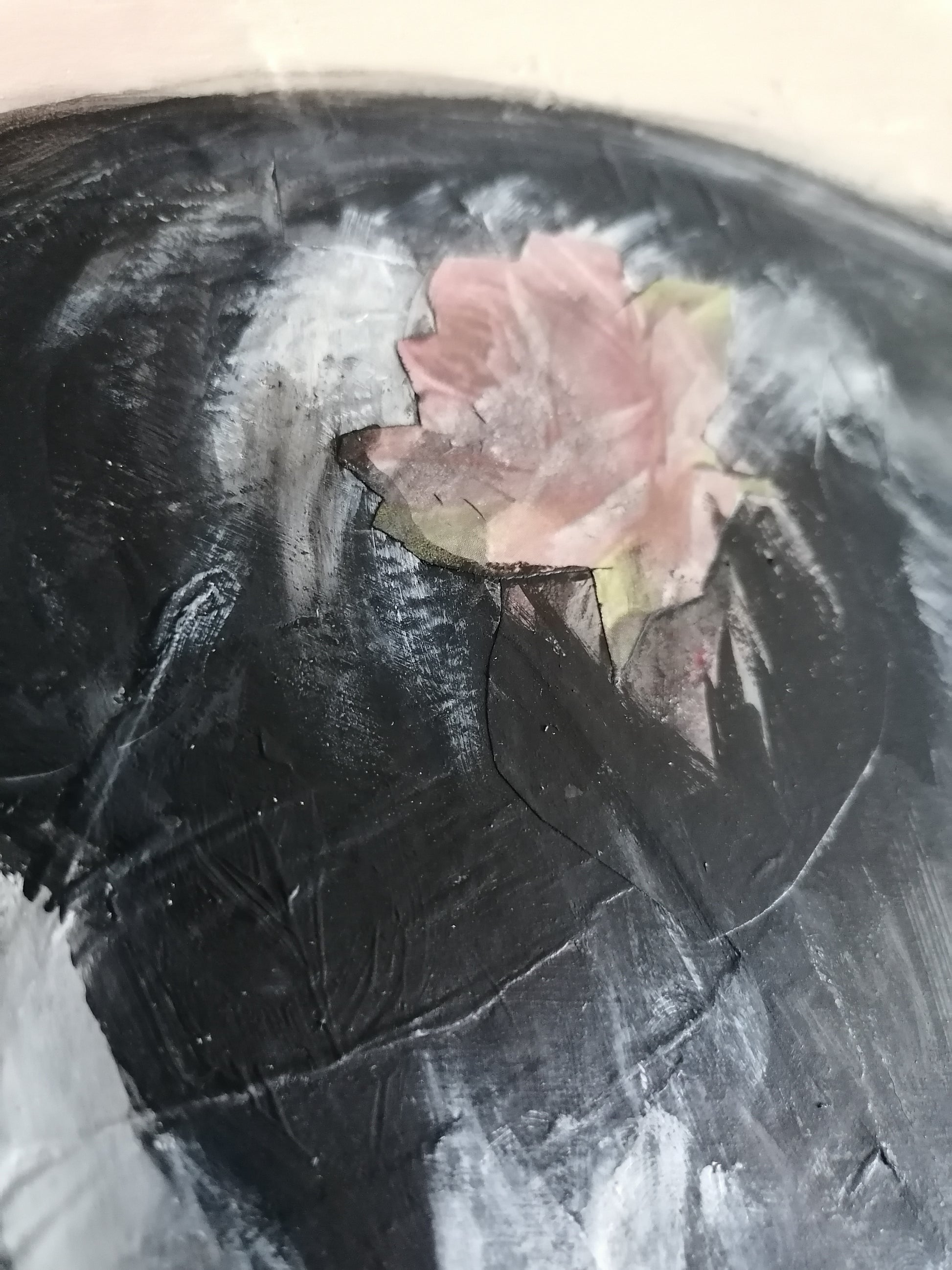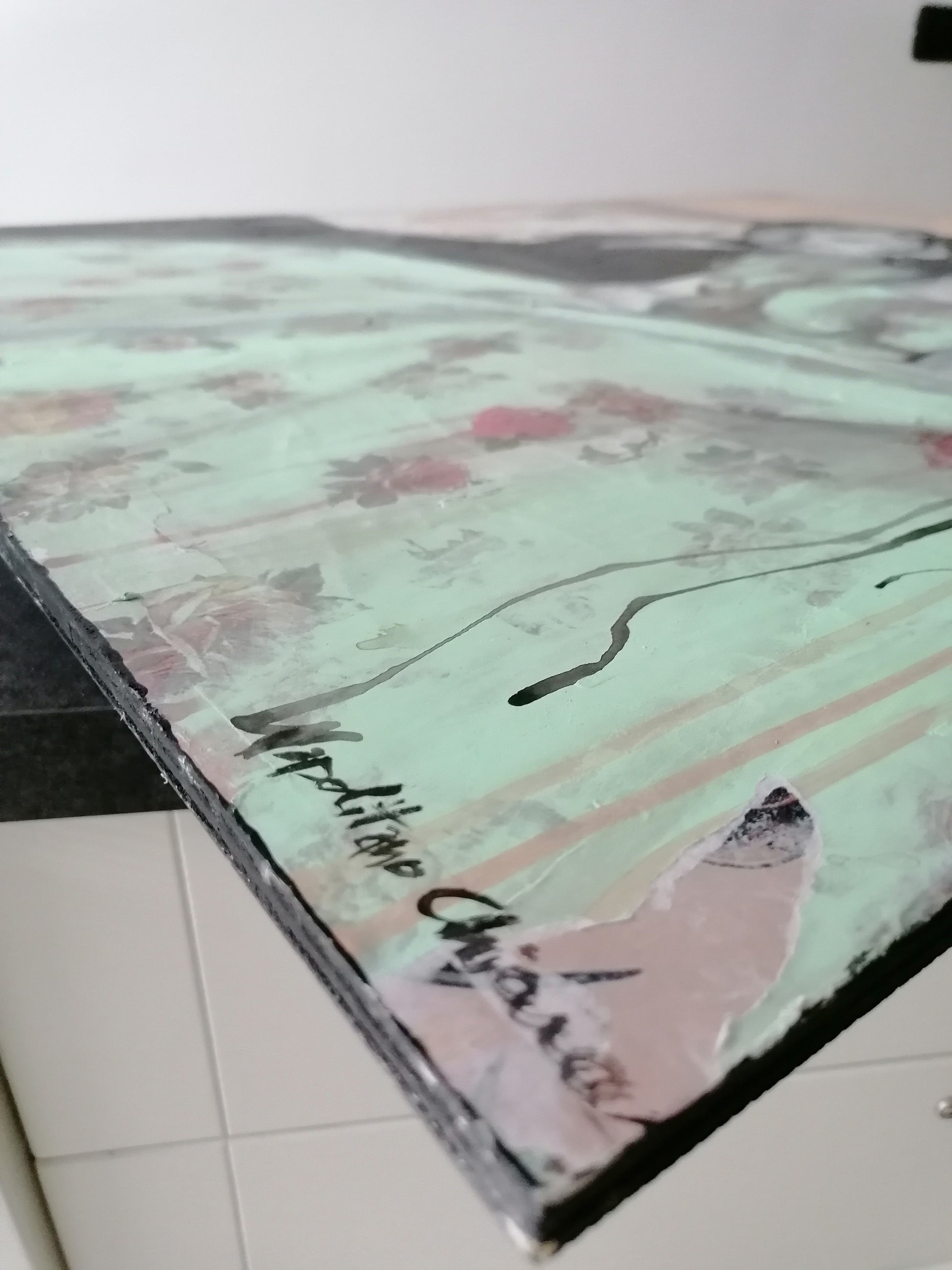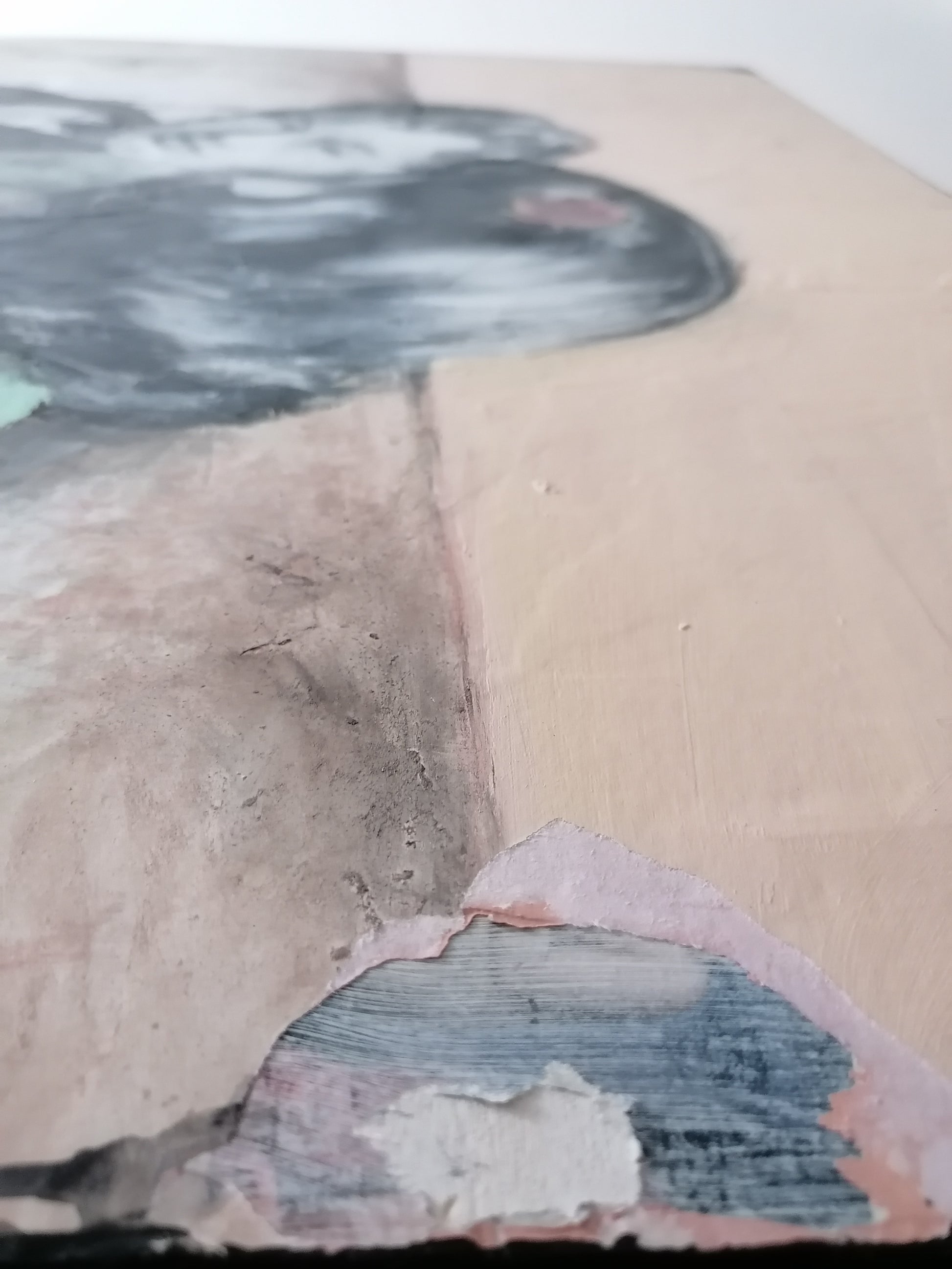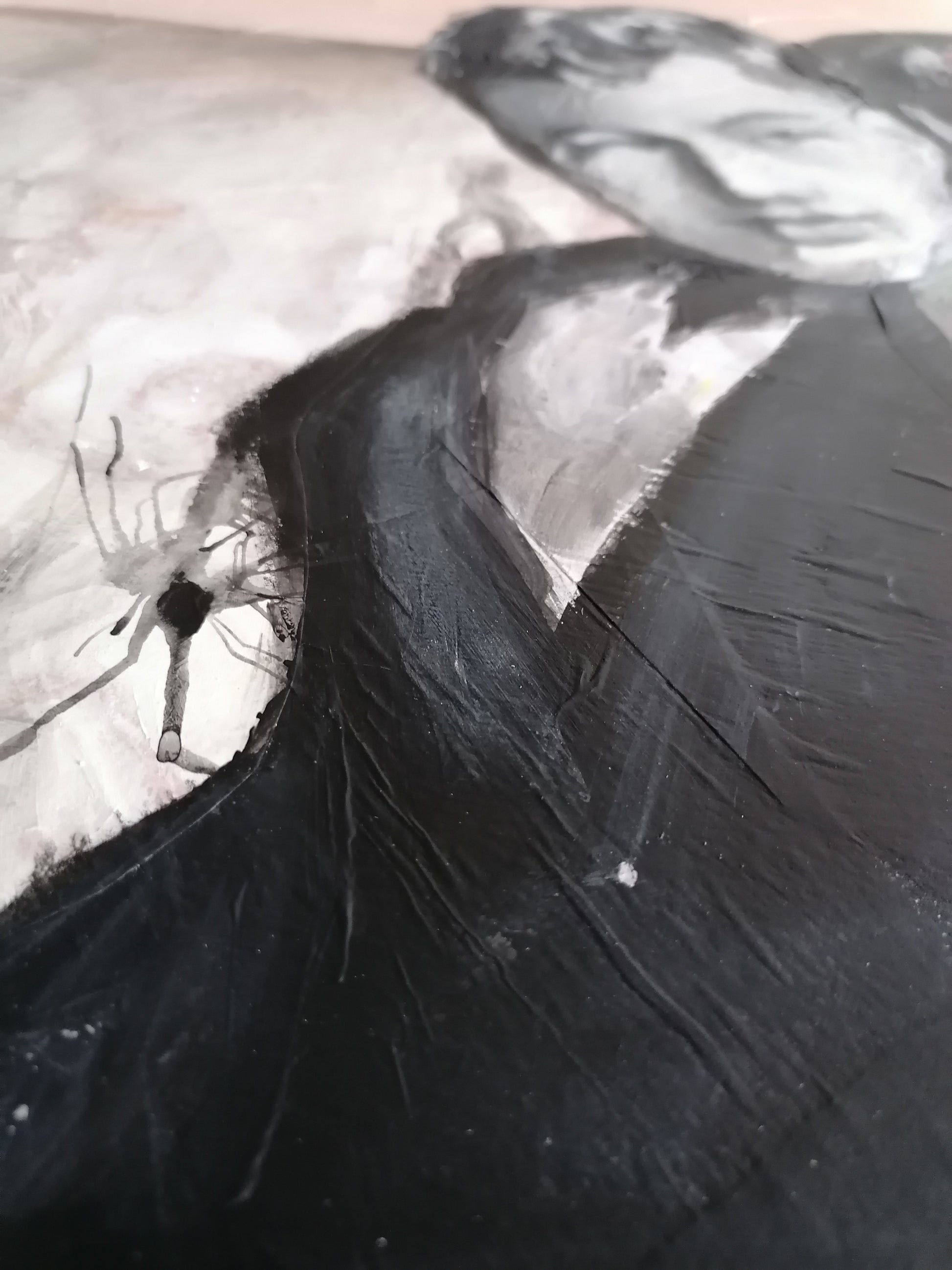 Una scena catturata in un momento privato. Due ragazzini alle prese con la loro prima cotta. Lo sguardo di lui è vivace e quasi malizioso, il volto di lei è coperto ma possiamo immaginarne l'espressione imbarazzata e timida dalle braccia giunte sulla gonna.