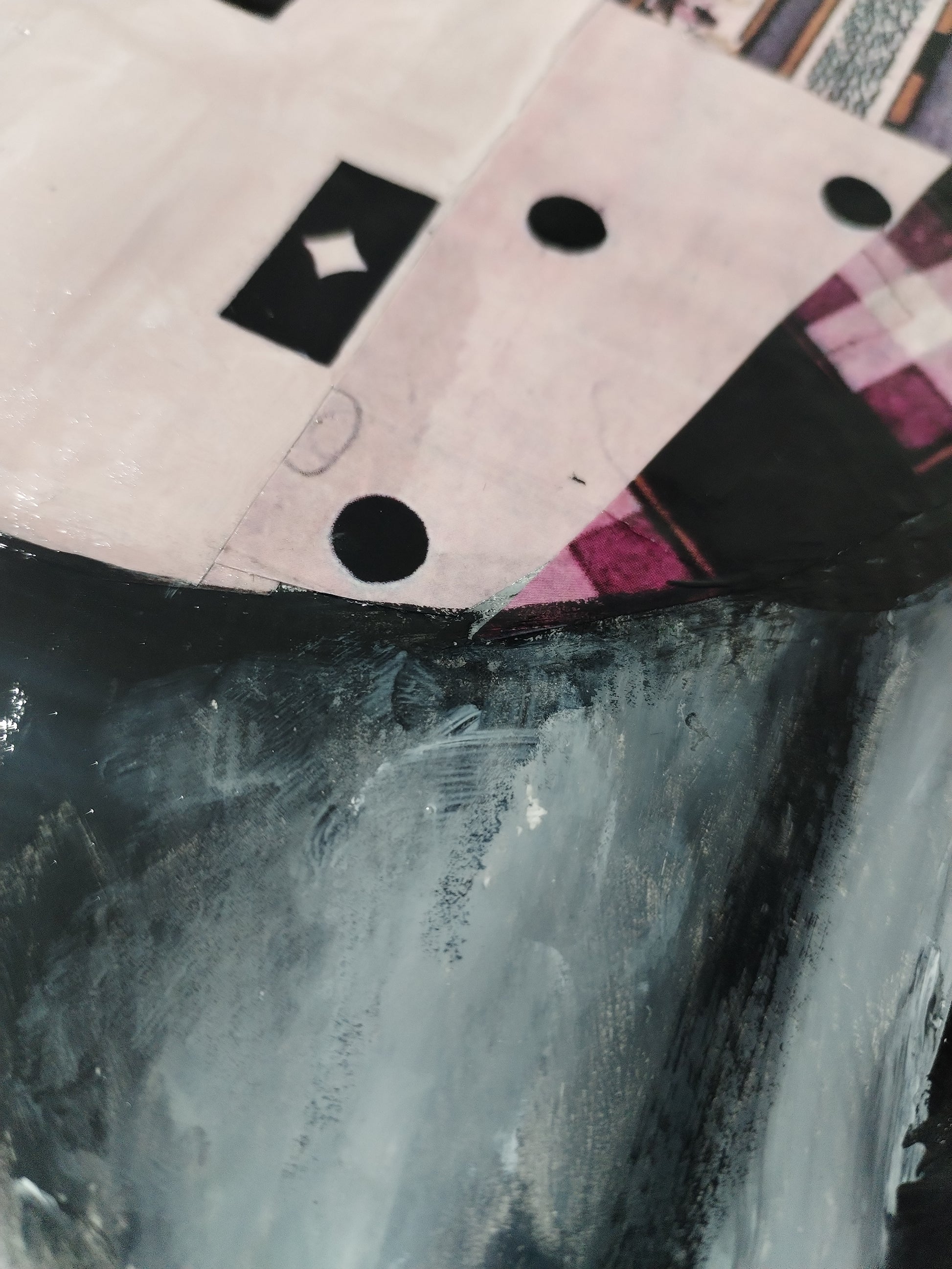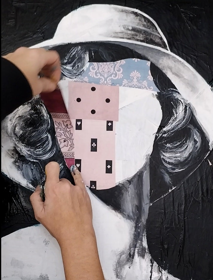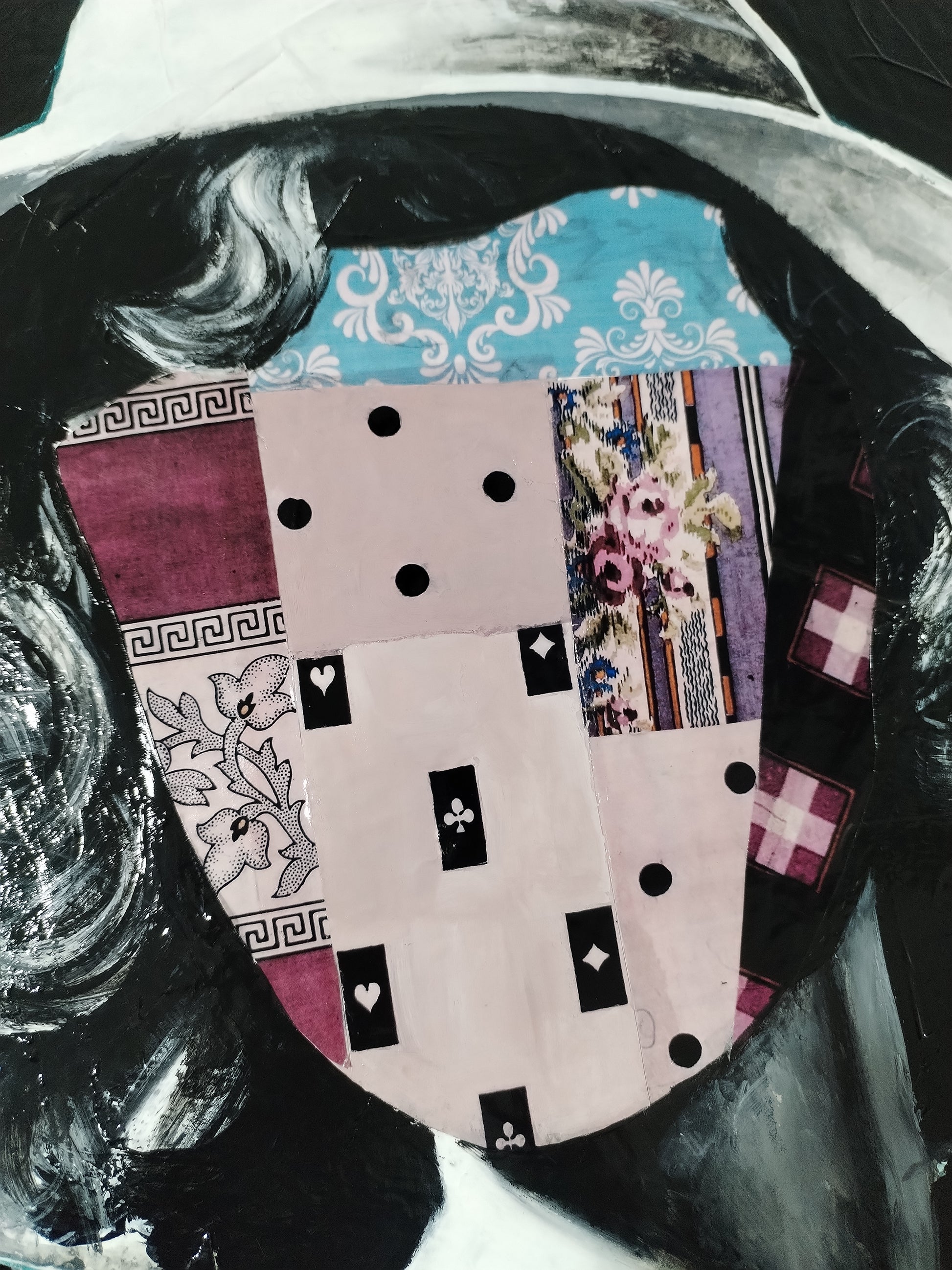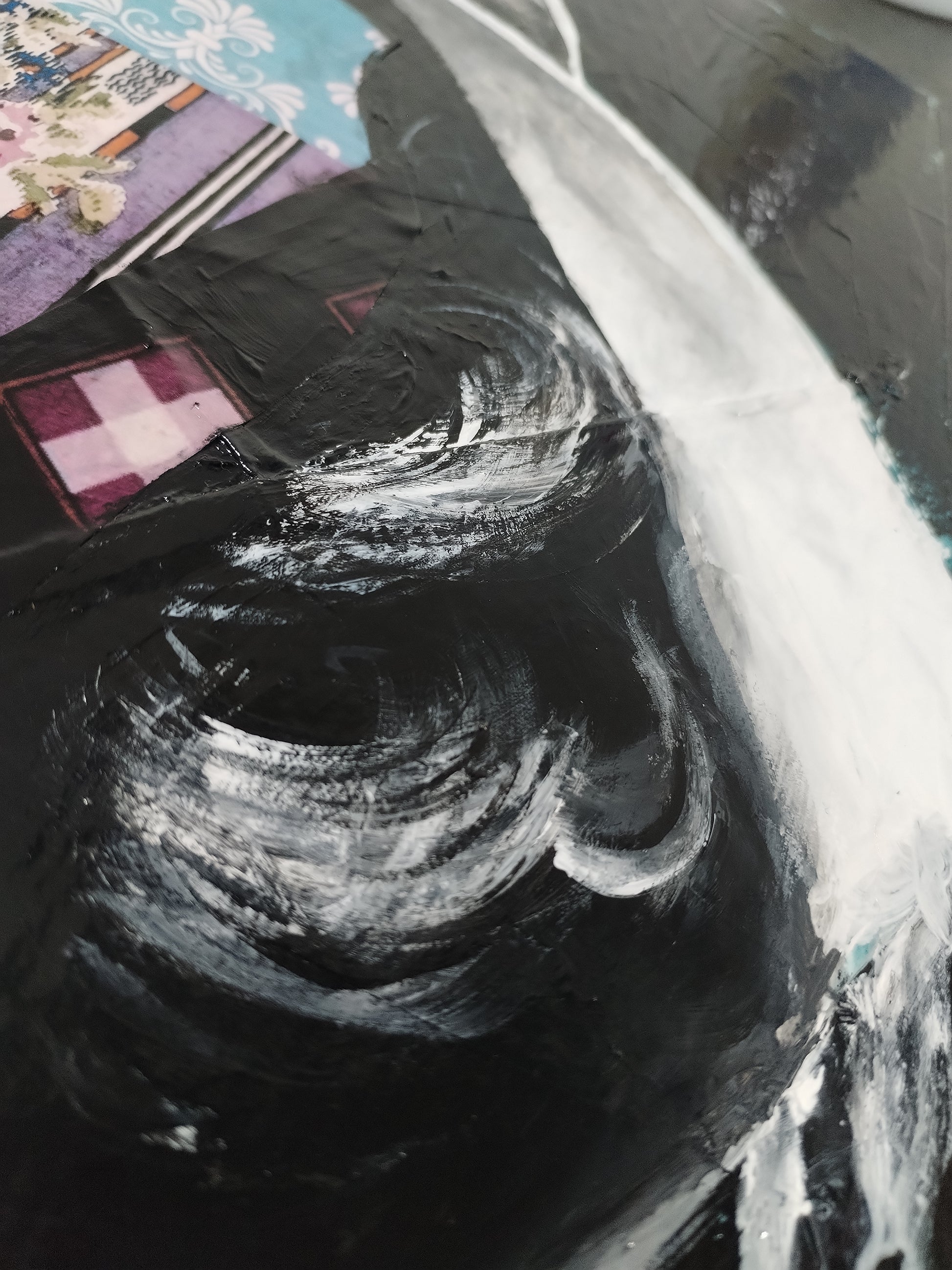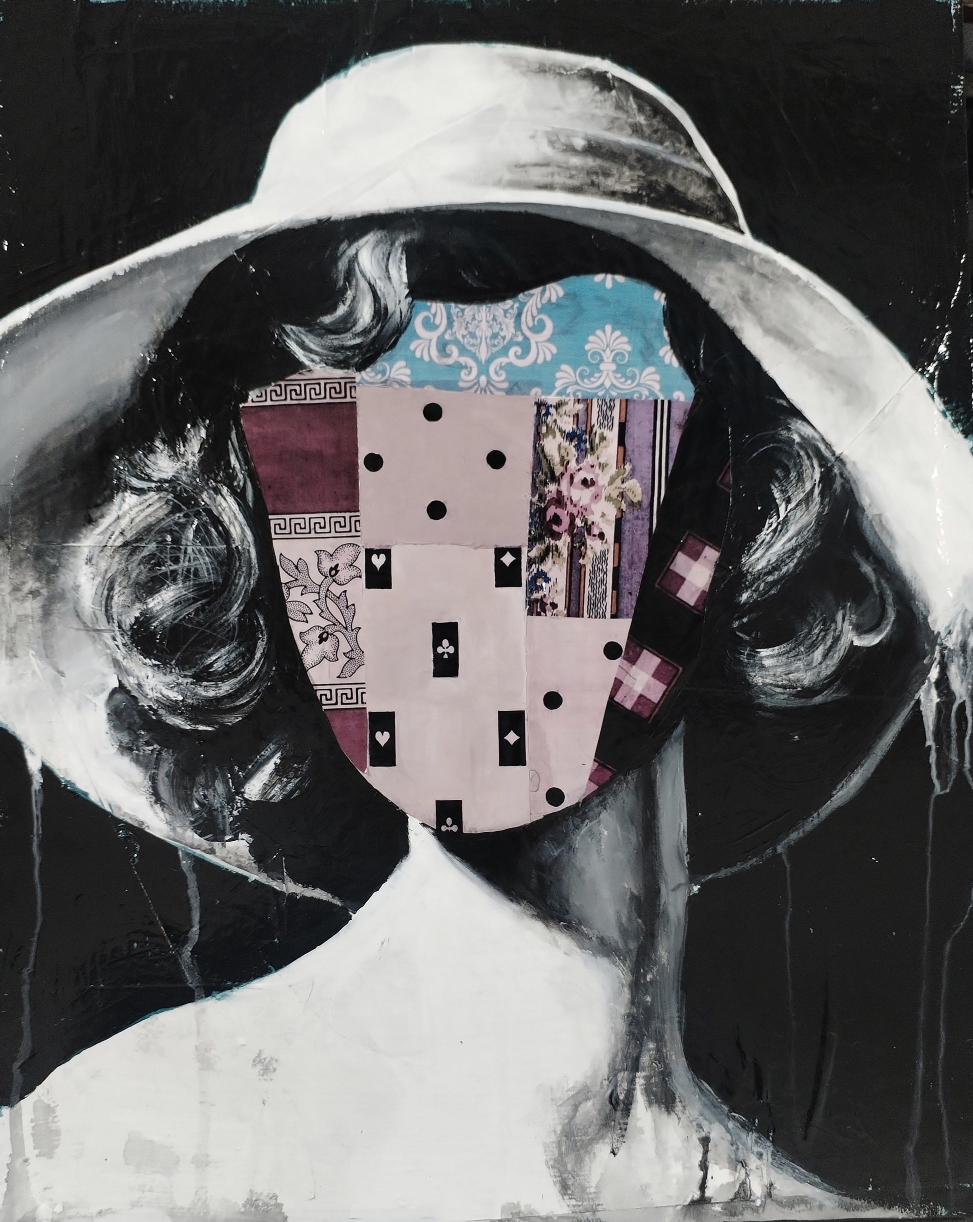 NESSUNA IDENTITÀ è dipinto con una tecnica mista, pittura acrilica e collage su tavola.In questo volto senza lineamenti c'è tutto il mio presente.Un’identità sospesa, frammentata, che si perde tra trame, simboli e silenzi.Oggi sento di non avere una forma chiara, né come artista né come persona.Dipingo, creo, ma mi chiedo continuamente: cosa mi definisce davvero?Ogni pezzo incollato è una parte di me che non so ancora dove mettere.Ogni vuoto è una domanda che non trova risposta.Questo dipinto è il mio modo di restare nel dubbio, senza fuggire.È un autoritratto emotivo, più che visivo.Un grido silenzioso che dice: “ci sono, anche se non so ancora chi sono.”Forse l’identità non è una forma da trovare, ma un sentiero da attraversare.